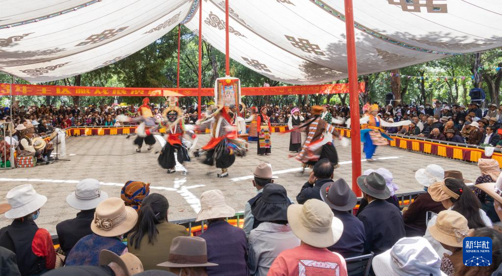 為慶祝雪頓佳節(jié),8月16日至8月22日期間,拉薩市在羅布林卡園林舉行藏戲匯演,吸引市民和游人前來欣賞。