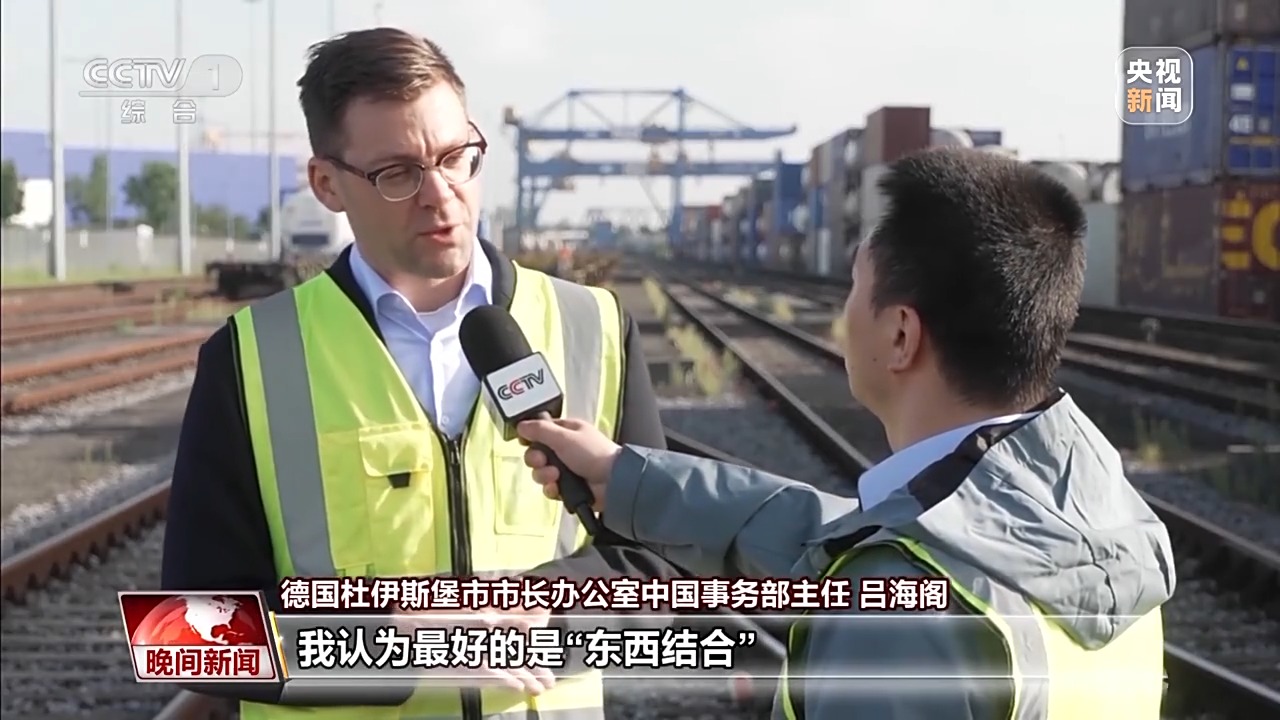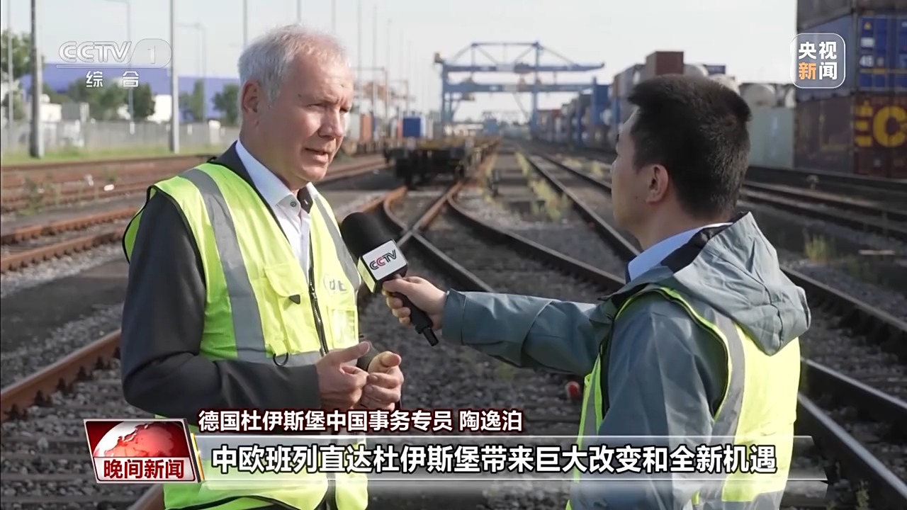 德國杜伊斯堡中國事務(wù)專員 陶逸泊:中歐班列直達杜伊斯堡帶來巨大改變和全新機遇。這條線路綿延上萬公里,從中國出發(fā)穿越6個國家,抵達我們這里。一切工作能在十幾天內(nèi)完成,非常了不起。