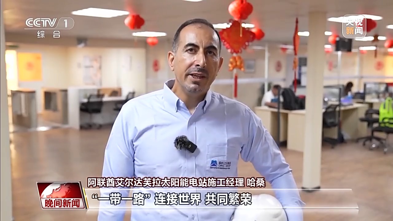 阿聯(lián)酋艾爾達芙拉太陽能電站施工經(jīng)理 哈桑:“一帶一路”連接世界,共同繁榮。
