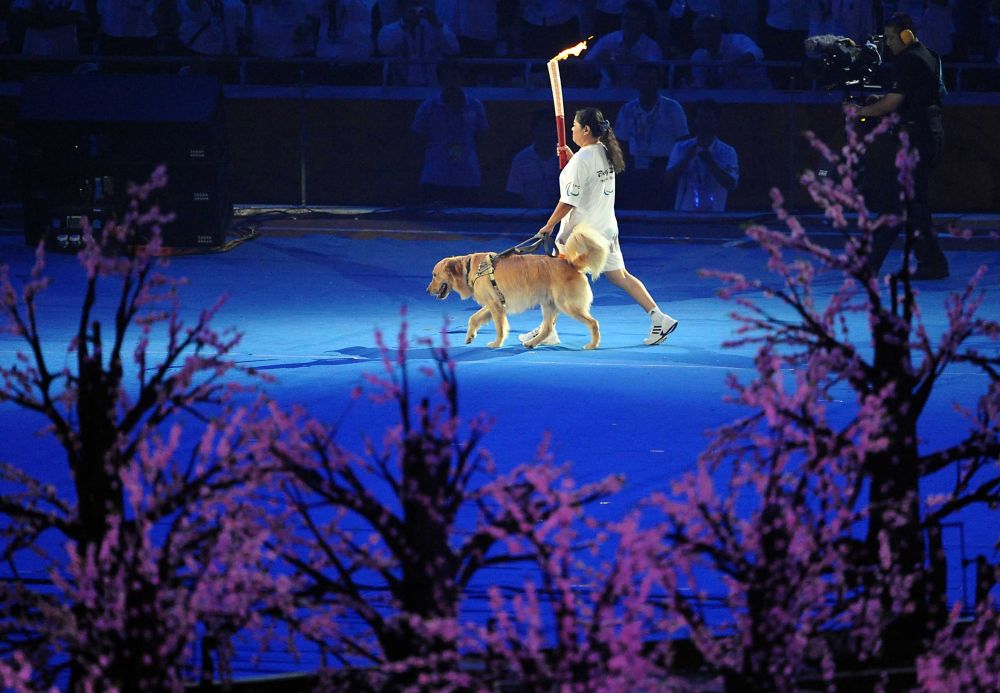 2008年9月6日,北京2008年殘奧會開幕式在國家體育場隆重舉行,火炬手平亞麗在進行火炬?zhèn)鬟f。新華社記者王頌攝