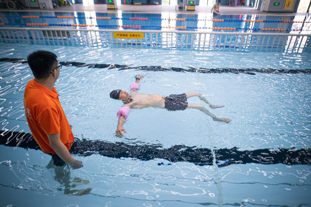 10月19日,殘疾人在杭州市錢塘區(qū)河莊文體中心無障礙游泳館內游泳。新華社記者 江漢 攝
