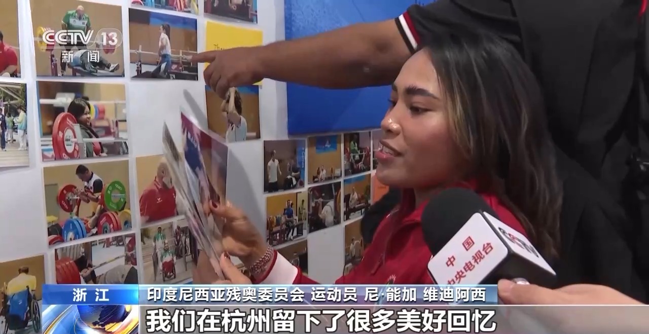 印度尼西亞殘奧委員會運(yùn)動員 尼·能加 維迪阿西:這真的很棒,我們在杭州留下了很多美好的記憶。這是我第一次擁有這樣的照片,工作人員拍照之后會張貼在墻上,我們可以拿走,留下自己寫的卡紙信。