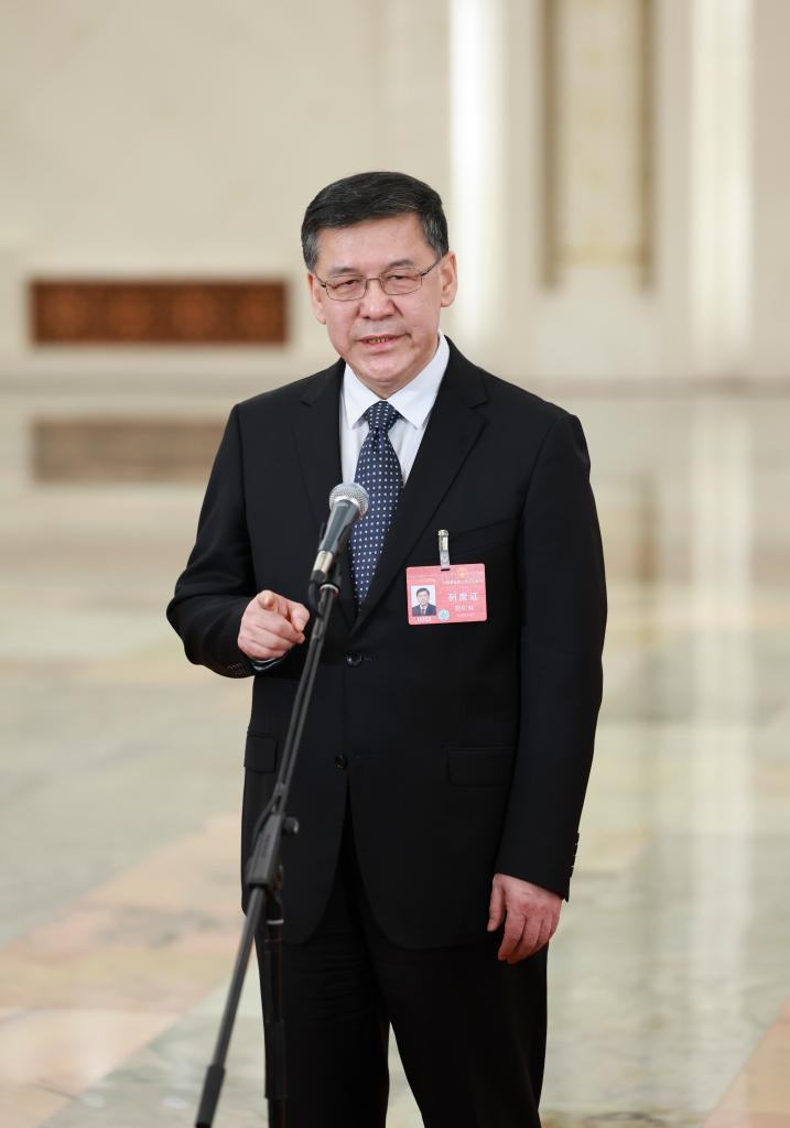 3月5日,第十四屆全國人民代表大會第二次會議首場“部長通道”集中采訪活動在北京人民大會堂舉行。這是科學(xué)技術(shù)部部長陰和俊接受媒體采訪。新華社記者 牟宇 攝