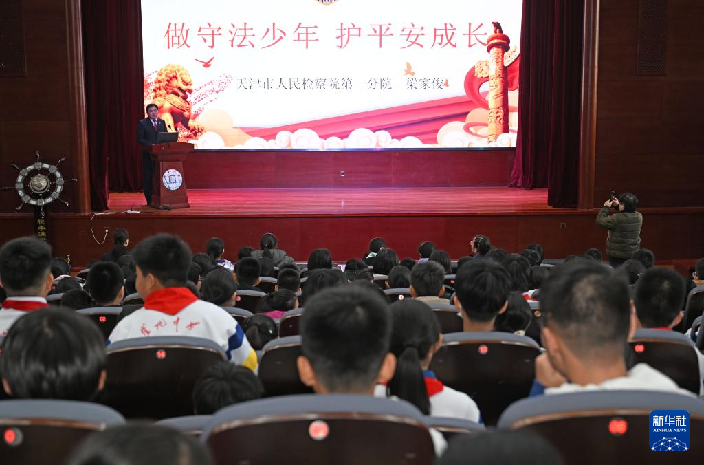12月3日,天津市人民檢察院第一分院檢察干警向天津市南開區(qū)崇化中學學生普及憲法知識。