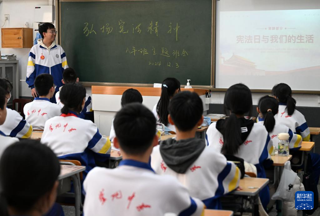 12月3日,天津市南開區(qū)崇化中學學生在國家憲法日教育宣傳主題班會上進行分享。