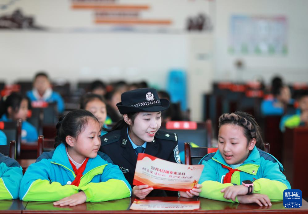 12月2日,民警在貴州省赤水市第二小學為學生普及憲法知識。