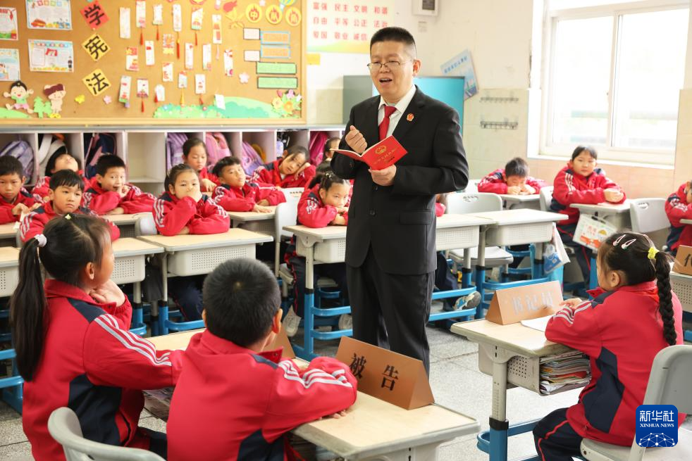 12月3日,貴州省銅仁市玉屏侗族自治縣人民檢察院的檢察干警在玉屏侗族自治縣第二小學給學生普及憲法知識。