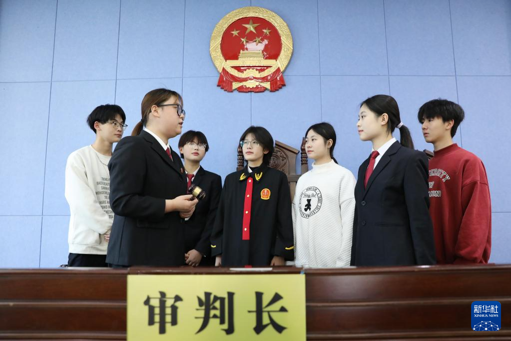 12月3日,河南省焦作市溫縣人民法院法官職雨潔為溫縣職教中心學生講解法槌的作用。