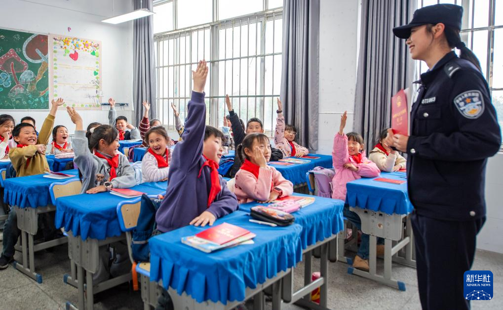 12月3日,在安徽省蕪湖市繁昌區(qū)孫村鎮(zhèn)中心小學,民警為小學生講解憲法知識。