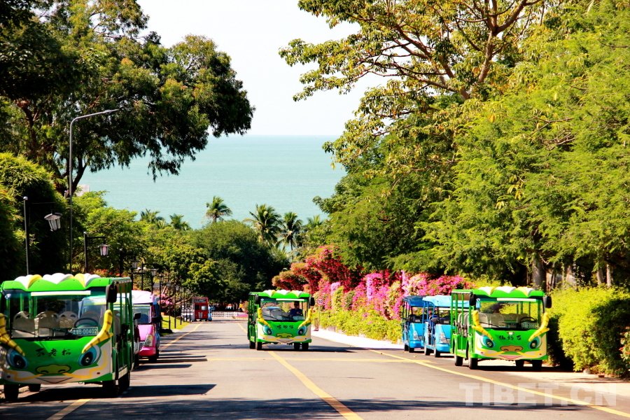 圖為海南三亞崖州灣國(guó)家5A級(jí)景區(qū)的大小洞天旅游區(qū)電動(dòng)觀光車(chē) 攝影:劉莉