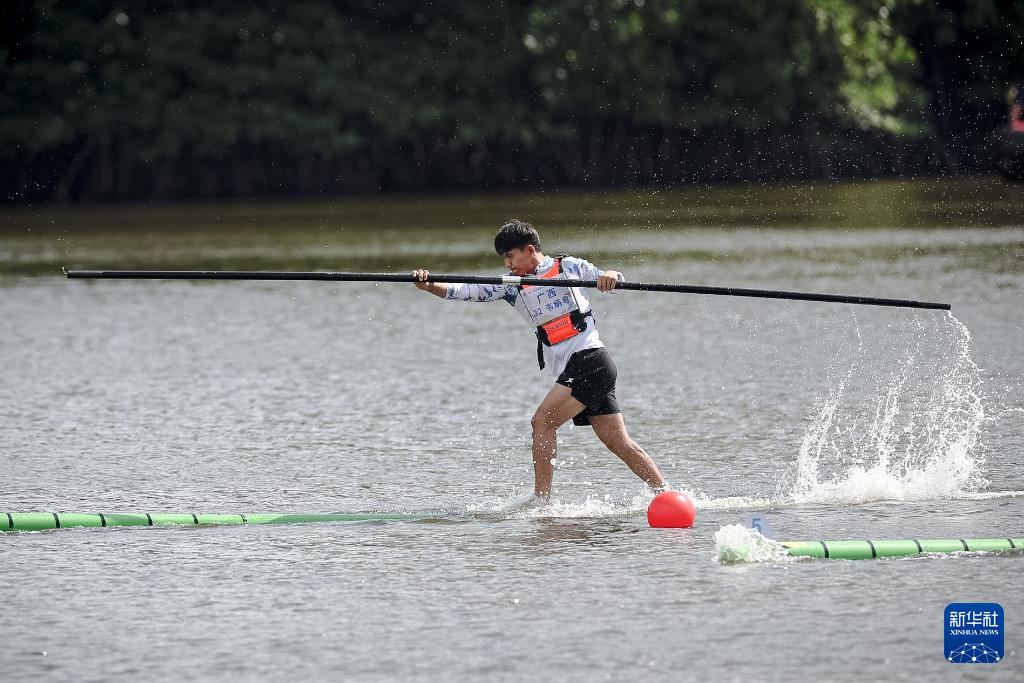 當(dāng)日,第十二屆全國少數(shù)民族傳統(tǒng)體育運(yùn)動(dòng)會(huì)獨(dú)竹漂男子組60米直道賽在海南省三亞市舉行。