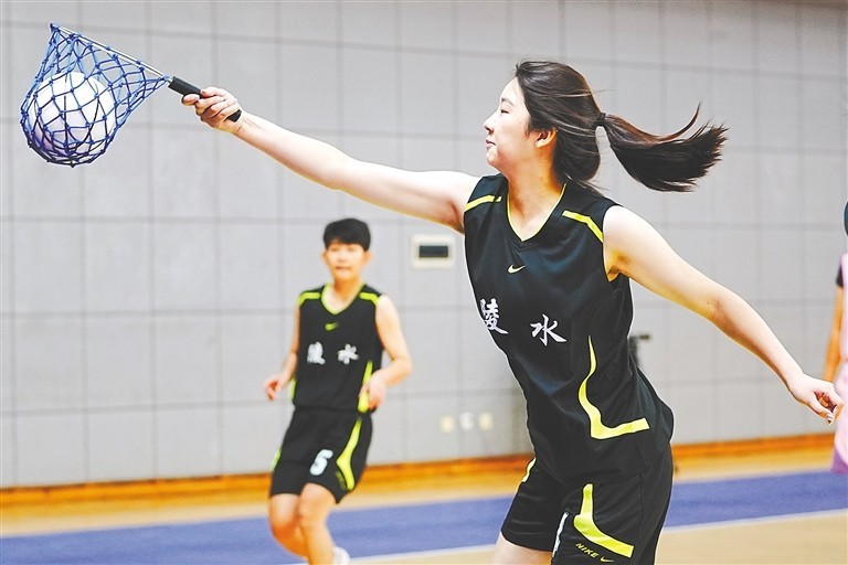 珍珠球,這個(gè)聽(tīng)起來(lái)頗為玲瓏秀氣的競(jìng)賽項(xiàng)目,實(shí)際上并不像它的名字那般美麗溫婉。比賽中,運(yùn)動(dòng)員需要不停地運(yùn)用加速?zèng)_刺、急停、轉(zhuǎn)身、變向變速、突破過(guò)人等身體動(dòng)作,配合快節(jié)奏的攻防戰(zhàn)術(shù),對(duì)運(yùn)動(dòng)員的速度、力量、耐力以及協(xié)調(diào)柔韌性等方面都要求極高,具有很強(qiáng)的對(duì)抗性和觀賞性。