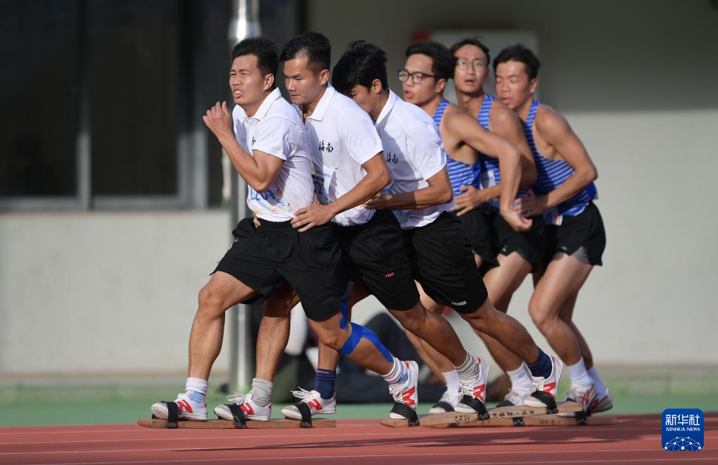 當日,第十二屆全國少數(shù)民族傳統(tǒng)體育運動會板鞋競速男子200米決賽在海南三亞舉行。