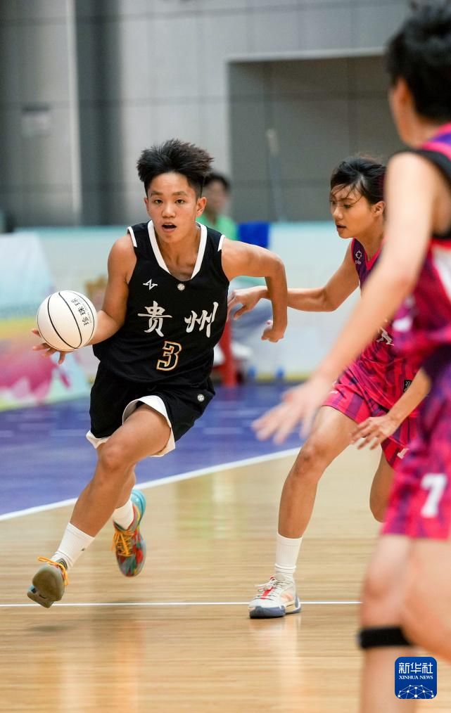 11月27日,貴州隊(duì)球員陳奕亦(左)在比賽中運(yùn)球。最終,貴州隊(duì)47比45戰(zhàn)勝北京隊(duì)。