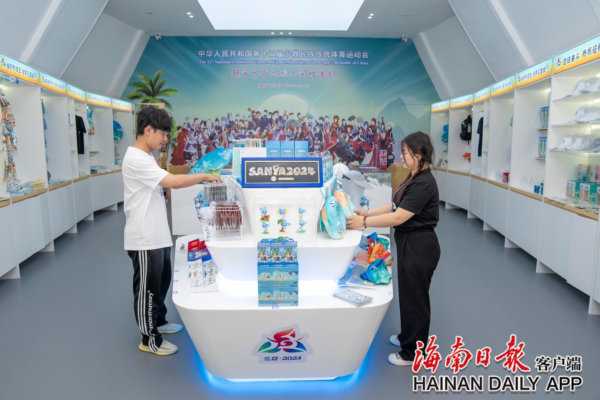 11月8日,在三亞灣紅樹林度假世界的運動會官方特許商品展示廳內(nèi),工作人員擺放商品。海南日報全媒體記者 李天平 攝