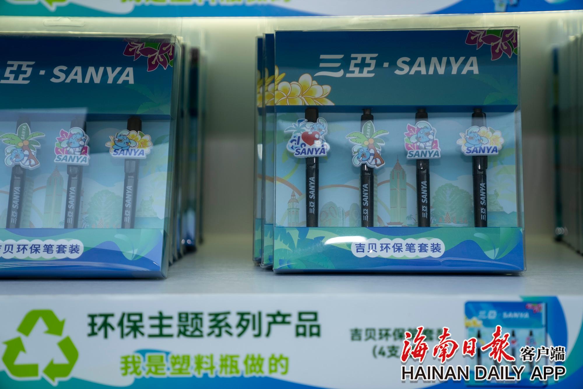 11月8日,三亞灣紅樹林度假世界的運動會官方特許商品展示廳內(nèi)的環(huán)保筆。海南日報全媒體記者 李天平 攝