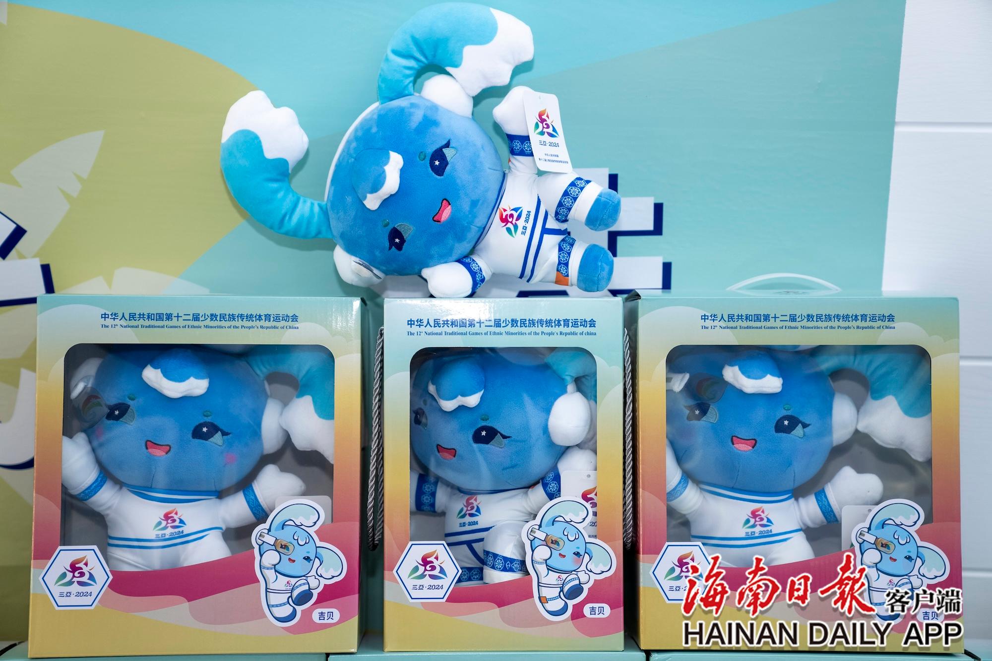 11月8日,三亞灣紅樹林度假世界的運動會官方特許商品展示廳內(nèi)的“吉貝”玩偶。海南日報全媒體記者 李天平 攝