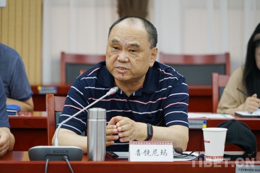 圖為喜饒尼瑪在紀(jì)念江孜抗英斗爭120周年學(xué)術(shù)研討會上發(fā)言 攝影:王茜