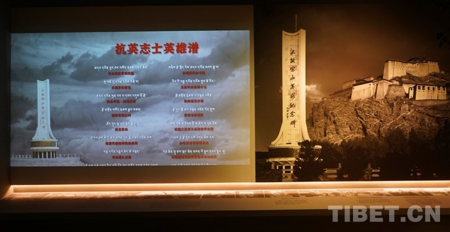 圖為“宗山號角——紀(jì)念西藏江孜抗英保衛(wèi)戰(zhàn)120周年主題展”中滾動播放抗英志士英雄譜 攝影:王茜