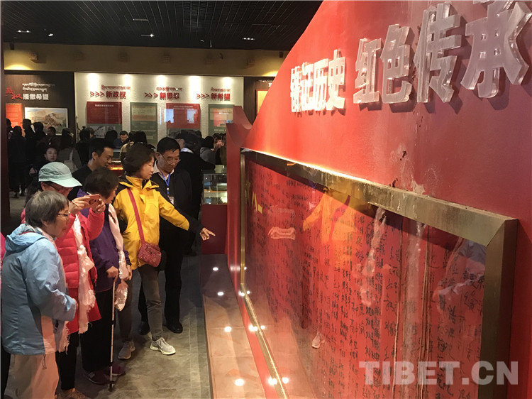 圖為十八軍老戰(zhàn)士及十八軍后代一行在甘孜縣朱德總司令和五世格達(dá)活佛紀(jì)念館內(nèi)參觀。攝影:龍真多吉