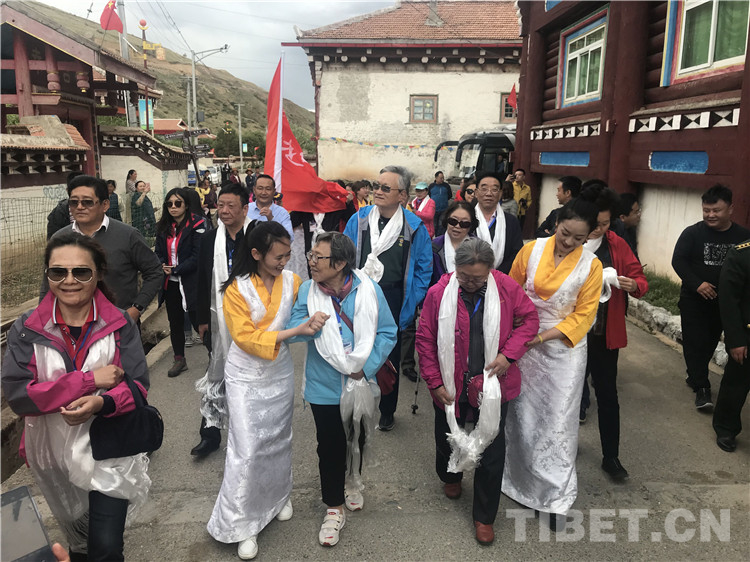 圖為走進(jìn)蝦拉沱村的十八軍老戰(zhàn)士及十八軍后代。攝影:龍真多吉