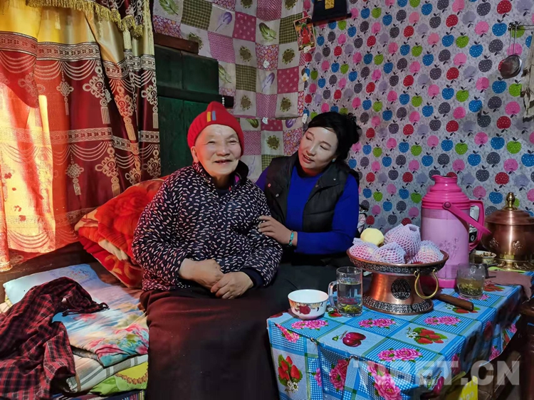 今年73歲的玉蘭老人,在崗?fù)写迳盍硕嗄?,她的父親是來(lái)自四川的漢族,母親是崗?fù)写宓牟刈?,從小就在藏漢結(jié)合家庭中成長(zhǎng)起來(lái)。現(xiàn)在,在女兒沖旺姆的精心照料下,過(guò)著安詳幸福的晚年生活。江達(dá)縣崗?fù)墟?zhèn)黃格村村民玉蘭說(shuō):“大概二十多年前,我們搬到了崗?fù)写迳?,這么多年,鄉(xiāng)里、村里的領(lǐng)導(dǎo)對(duì)我們家很照顧,我感覺(jué)現(xiàn)在生活的很好,很滿(mǎn)意!”