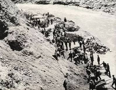 圖為十八軍筑路部隊在絕壁上鑿路 圖片來源:《中國西藏》雜志
