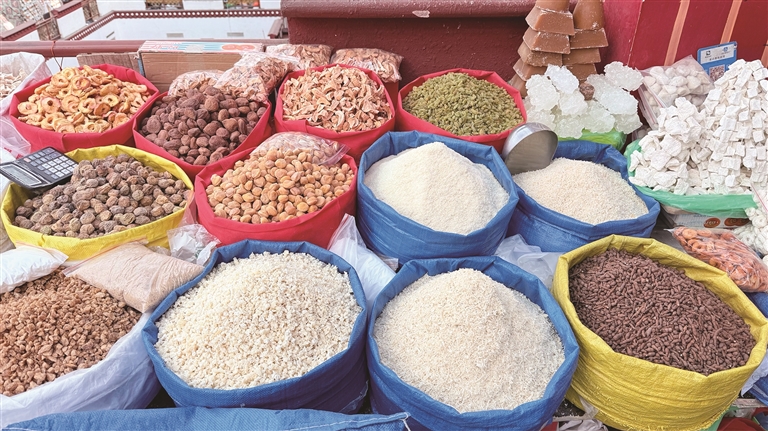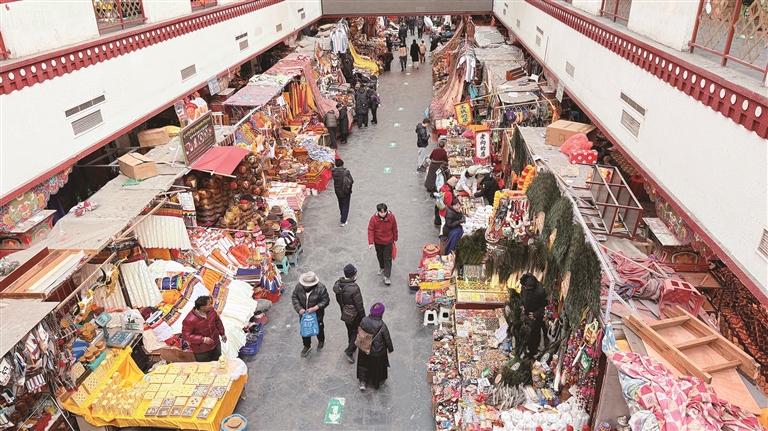 頓珠則在攤位前挑選了一款極具當?shù)靥厣拈T簾?!岸焯鞖饫?,又趕上藏歷新年快到了,掛上門簾既能擋風保暖,又能增添節(jié)日氛圍?!薄☆D珠說,八廓商城的一站式采購太方便了,吃的、喝的、穿的、用的一應俱全,不用東奔西跑,省了不少時間和精力。