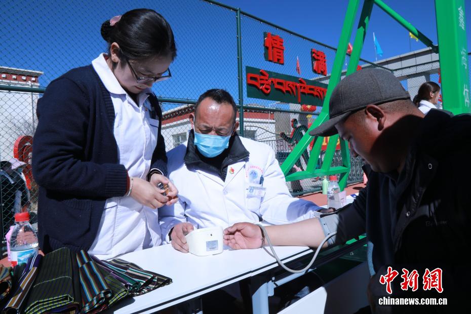 2月6日,春節(jié)、藏歷新年來臨之際,西藏拉薩市墨竹工卡縣殘疾人聯(lián)合會在墨竹工卡縣殘疾人綜合服務(wù)中心開展“殘疾人文化進(jìn)社區(qū)”活動,豐富殘疾人精神文化生活,傳遞社會溫情?;顒蝇F(xiàn)場張燈結(jié)彩,歌舞節(jié)目輪番上演,充分展現(xiàn)殘疾人積極向上的精神風(fēng)貌。工作人員為殘疾人送上慰問品與雙節(jié)祝福;義診區(qū)提供健康檢測、康復(fù)指導(dǎo)服務(wù);手工藝展區(qū)陳列著殘疾人制作的藏式手工藝品;趣味游戲區(qū)開展無障礙互動活動,現(xiàn)場歡聲笑語不斷。圖為醫(yī)生為殘疾人測量血壓。