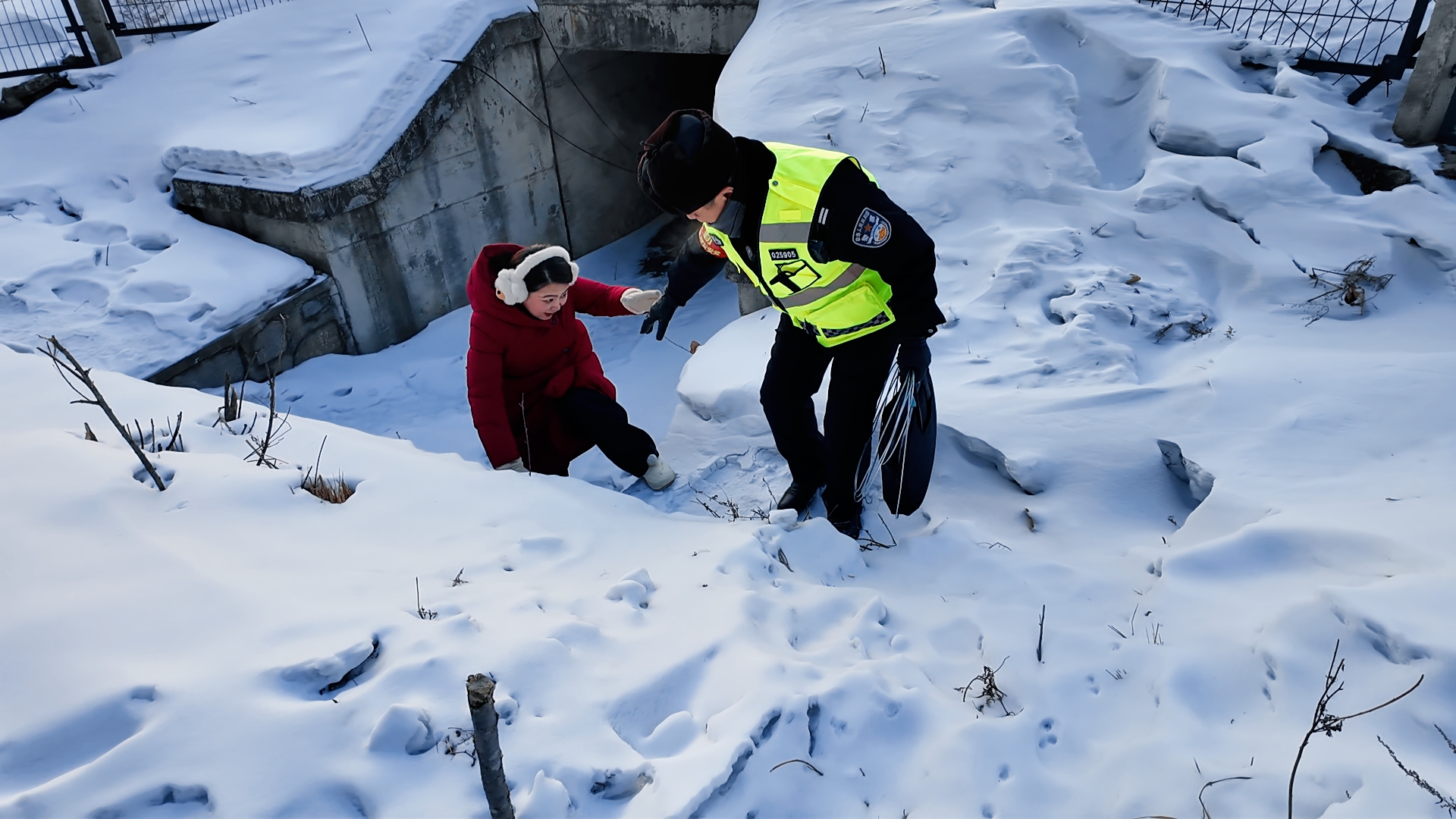 凌晨6時30分,我隨老薛踏上巡線路。今年已57歲的老薛,在雪地中步履輕盈。積雪沒踝,寒風(fēng)如刃,僅走半公里我便雙腳麻木。老薛負(fù)責(zé)安全巡視鐵路沿線22公里,32年來踏過春雪、夏汛、秋霜、冬寒,日復(fù)一日從未停歇;獨自駐站15年,3輛自行車被歲月磨壞。巡線時,他有一個時刻不離身的記錄本,里面記錄著每一處涵洞編號、每一段鐵軌隱患。彎腰查涵洞時,警帽積雪簌簌滑落,身材并不魁梧的他雙手布滿老繭,在固定標(biāo)語牌纏繞鐵絲時異常有力。