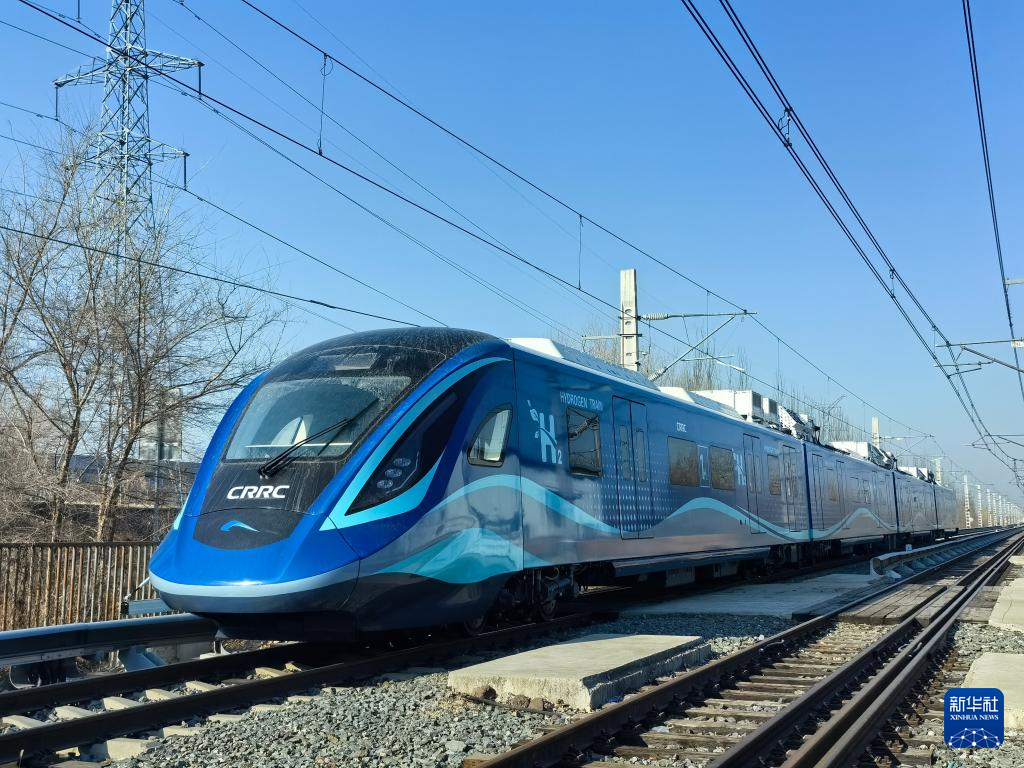 我國首列氫能源市域列車在位于長春的中車長客試驗(yàn)線進(jìn)行運(yùn)行試驗(yàn)(3月21日攝)。