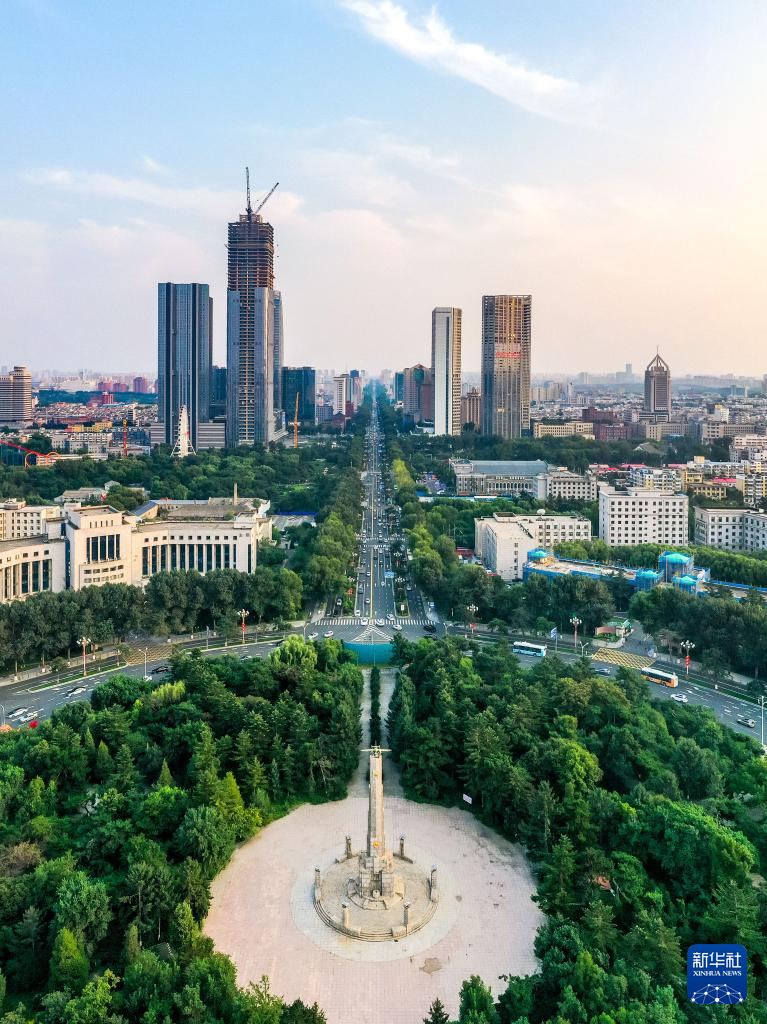 8月24日拍攝的長春市中軸線上的人民廣場(chǎng)及人民大街(無人機(jī)照片)。