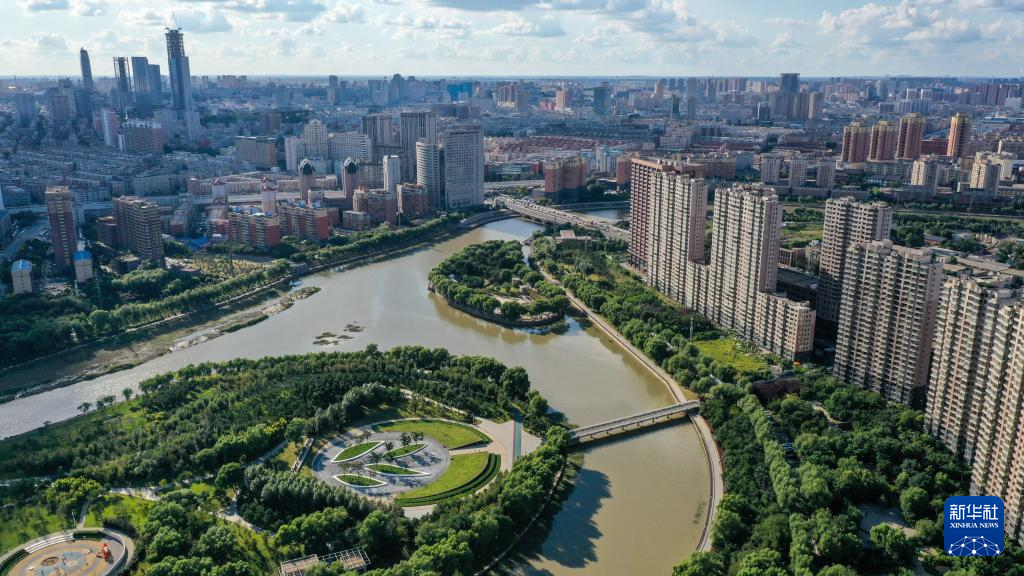 8月27日拍攝的長春市伊通河景色(無人機(jī)照片)。
