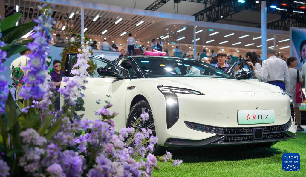 7月13日,觀眾在第21屆長春國際汽車博覽會(huì)的紅旗品牌展區(qū)參觀EH7車型。