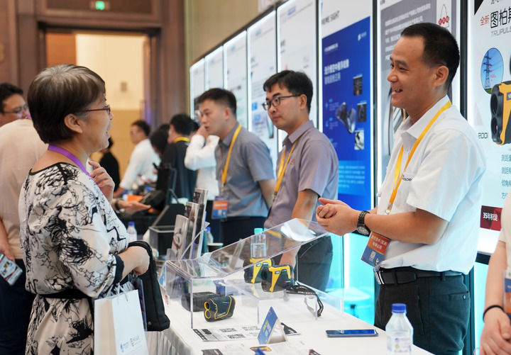 2024年8月8日,在上海舉行的第七屆進(jìn)博會(huì)技術(shù)裝備、汽車(chē)展區(qū)展前供需對(duì)接會(huì)現(xiàn)場(chǎng),展商工作人員(右)向采購(gòu)商介紹企業(yè)產(chǎn)品。新華社發(fā)(陳浩明 攝)