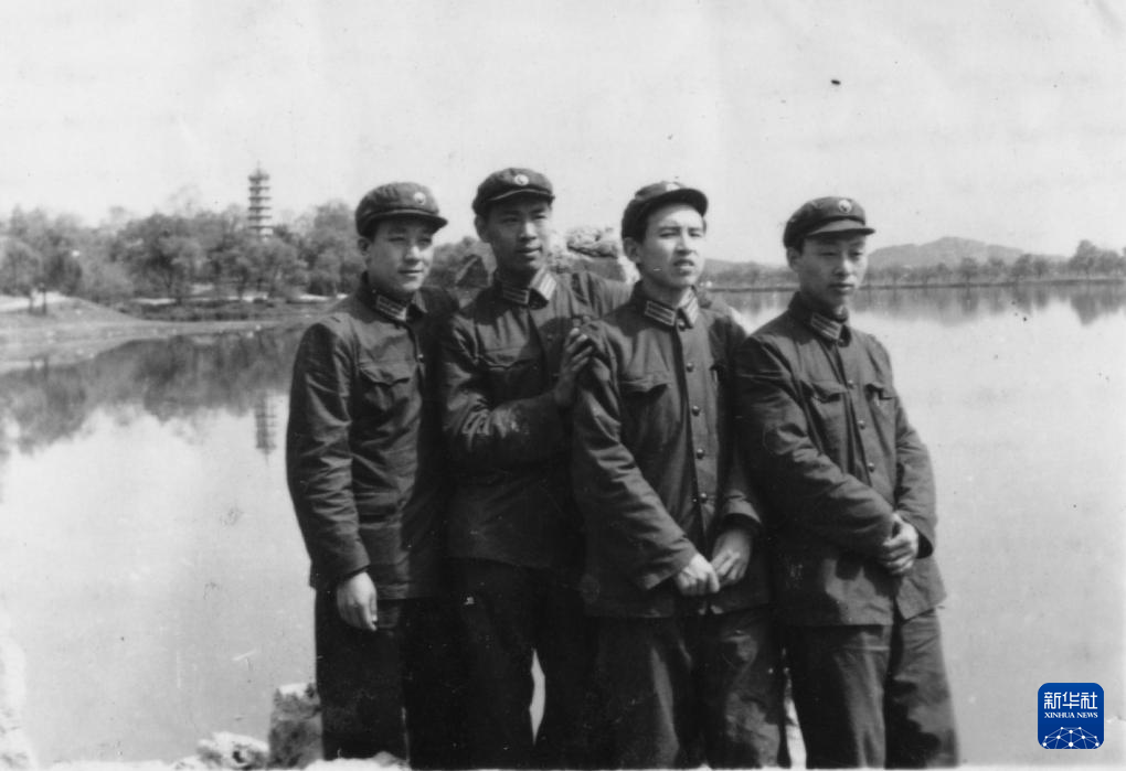 1962年,王小謨(左二)參軍分配后和戰(zhàn)友合影(資料照片)。新華社發(fā)(中國(guó)電子科技集團(tuán)有限公司電子科學(xué)研究院供圖)