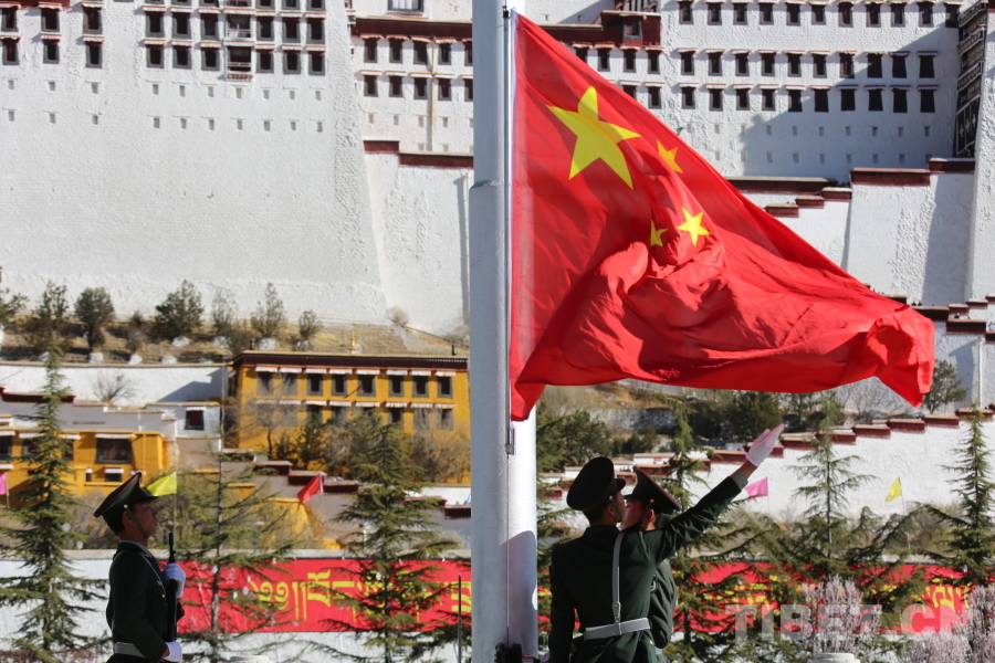 圖為2025年3月28日,國旗在布達(dá)拉宮廣場升起攝影:旦曲