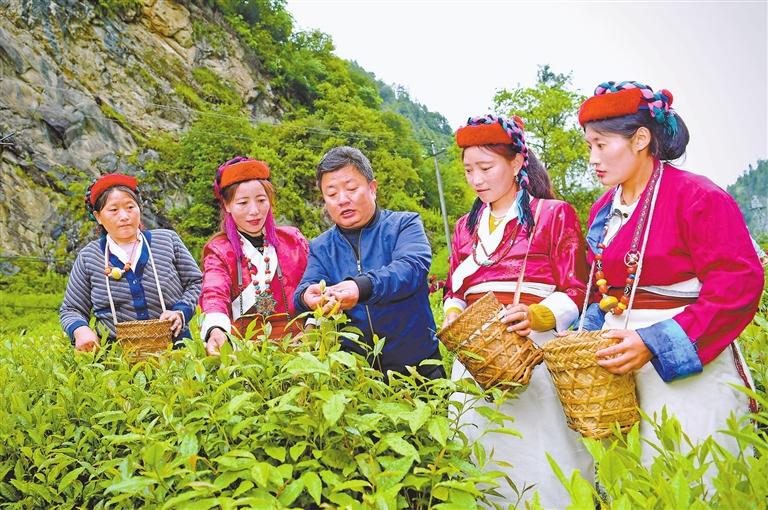 錯(cuò)那市勒布溝,安徽第七批援藏隊(duì)隊(duì)員裴含龍指導(dǎo)門巴族村民規(guī)范采摘茶葉。方晨介紹,根據(jù)山南的資源優(yōu)勢(shì),安徽援藏工作隊(duì)重點(diǎn)培育清潔能源產(chǎn)業(yè)、現(xiàn)代農(nóng)牧業(yè)、文化旅游業(yè)三大產(chǎn)業(yè)。
