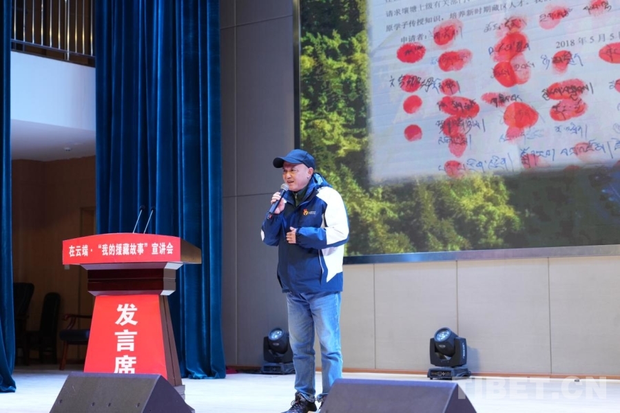 圖為龔仙彥在“在云端·我的援藏故事”宣講會(huì)現(xiàn)場(chǎng)宣講 攝影:邊子捷