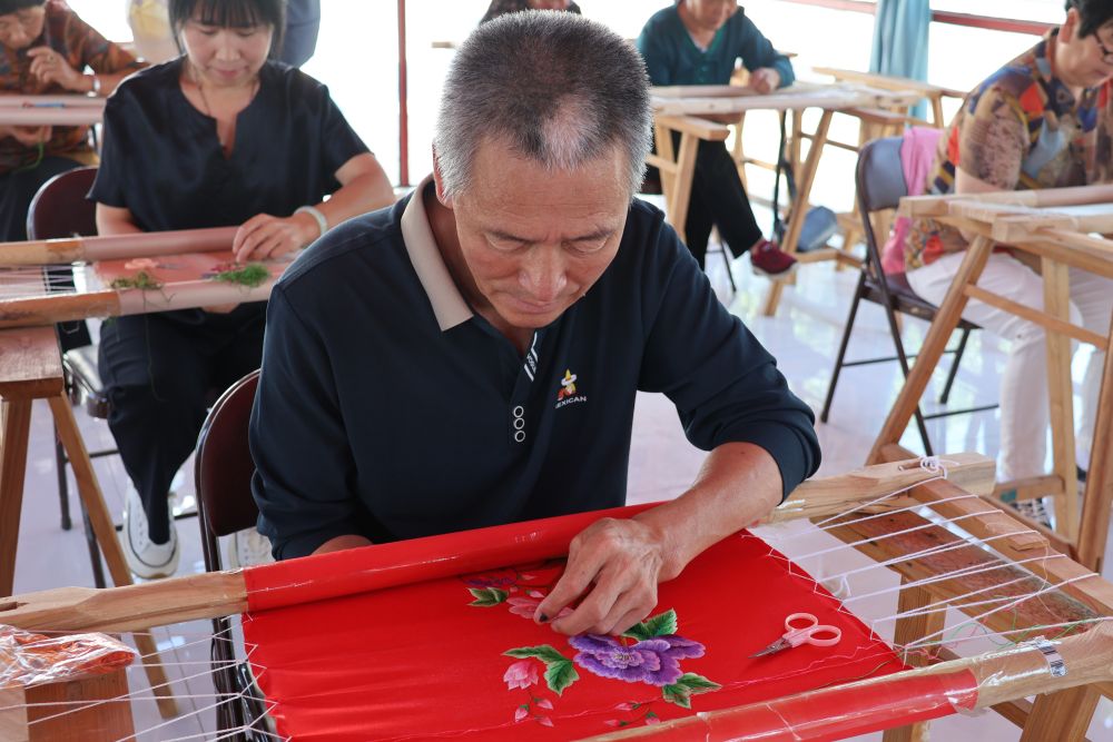 車間里,來(lái)自不同民族的繡工在交流和學(xué)習(xí)中,不僅精進(jìn)了繡法,也在傳承中華優(yōu)秀傳統(tǒng)文化中找到了更多共鳴,“同心同圓”等象征民族團(tuán)結(jié)的繡品表達(dá)著他們的心聲。