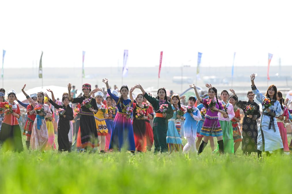 2024年7月14日,“相約草原·遇見那達慕”內蒙古第34屆草原那達慕在錫林郭勒盟開幕,吸引游客前來感受草原文化。新華社記者 貝赫 攝