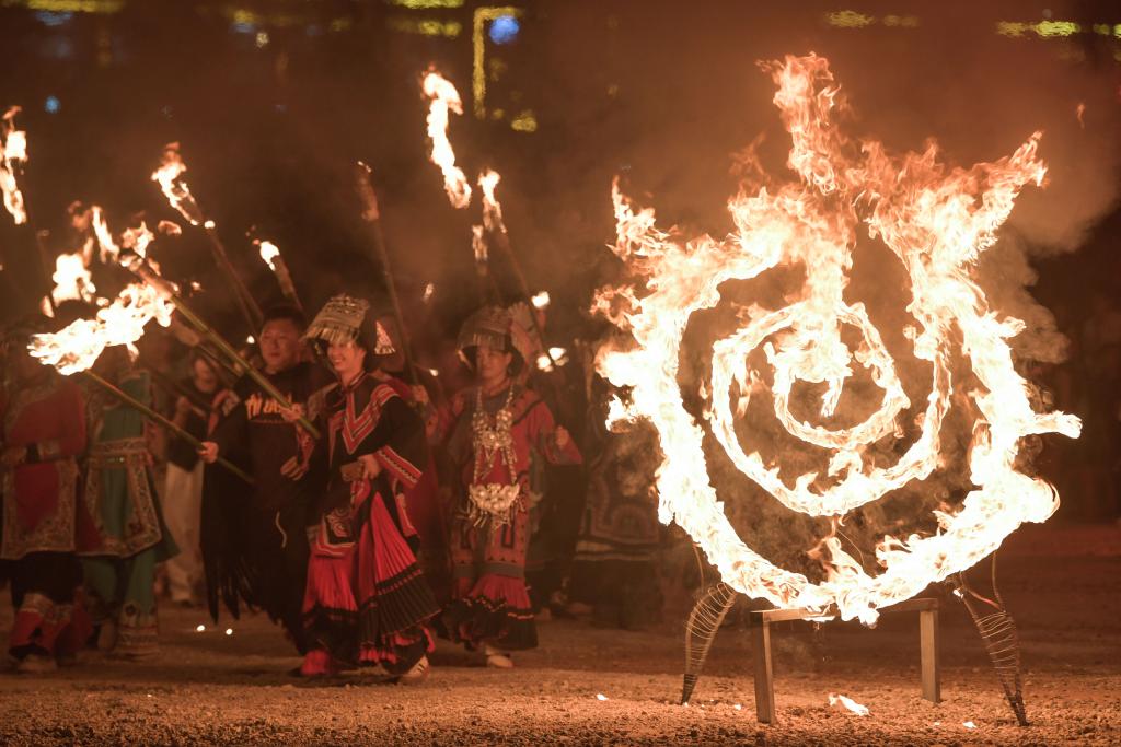 2024年7月29日,人們參加貴州省威寧縣彝族火把節(jié)活動。新華社記者 楊文斌 攝