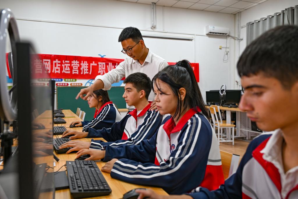 2024年9月10日,在阿拉爾職業(yè)技術學校,李斌傲在實訓室指導學生?!?5后”年輕教師李斌傲是第十一批浙江臺州到新疆阿拉爾職業(yè)技術學校援疆教師中的一員。2023年2月,李斌傲前往阿拉爾任教。一年半任期結束后,他沒有選擇回到臺州,而是申請留下來,在阿拉爾繼續(xù)播撒知識的種子。新華社記者 陳朔 攝