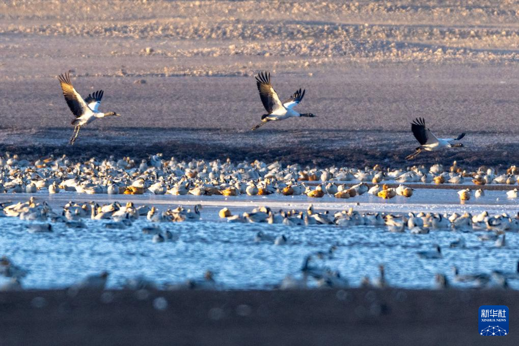 這是11月23日在西藏拉薩市林周縣拍攝的越冬候鳥。新華社記者 姜帆 攝