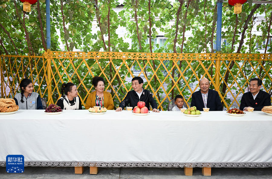 9月25日下午,受習近平總書記囑托,中共中央政治局常委、全國政協主席、中央代表團團長王滬寧帶領中央代表團部分成員在巴音郭楞蒙古自治州庫爾勒市看望慰問當地各族干部群眾。這是王滬寧和中央代表團部分成員在庫爾勒市阿瓦提鄉(xiāng)吾夏克鐵熱克村了解鄉(xiāng)村產業(yè)發(fā)展和群眾生產生活情況。新華社記者 張領 攝