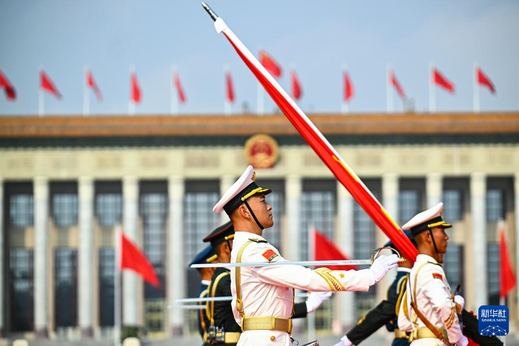 9月3日,紀念中國人民抗日戰(zhàn)爭暨世界反法西斯戰(zhàn)爭勝利80周年大會在北京隆重舉行。這是國旗護衛(wèi)隊列隊。