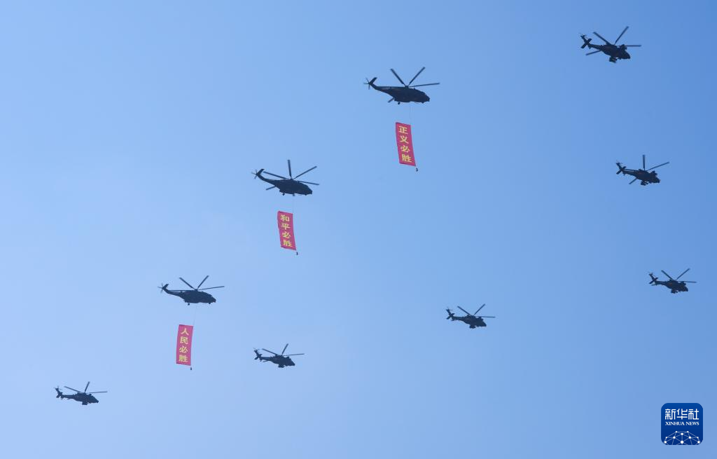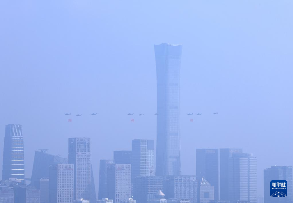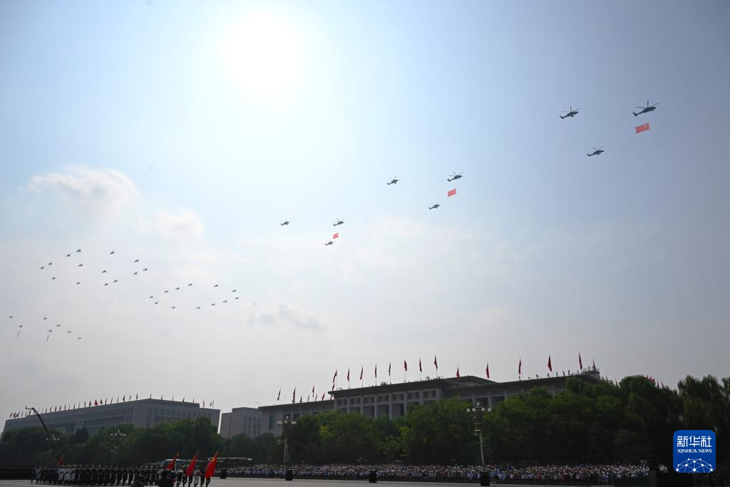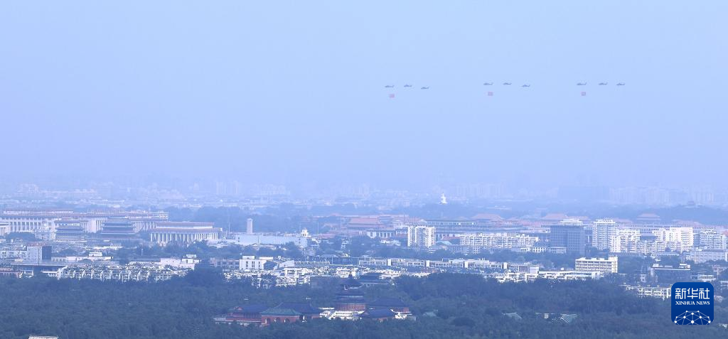 9月3日,紀念中國人民抗日戰(zhàn)爭暨世界反法西斯戰(zhàn)爭勝利80周年大會在北京隆重舉行。這是空中護旗梯隊。