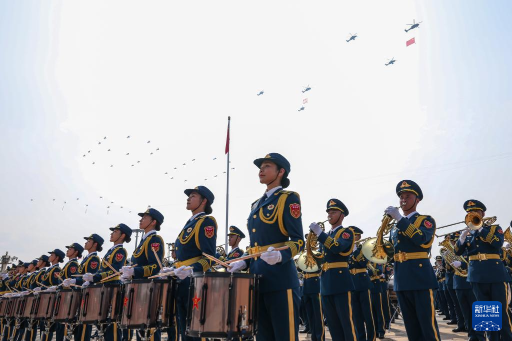 9月3日,紀念中國人民抗日戰(zhàn)爭暨世界反法西斯戰(zhàn)爭勝利80周年大會在北京天安門廣場隆重舉行。這是中國人民解放軍聯(lián)合軍樂團在演奏。