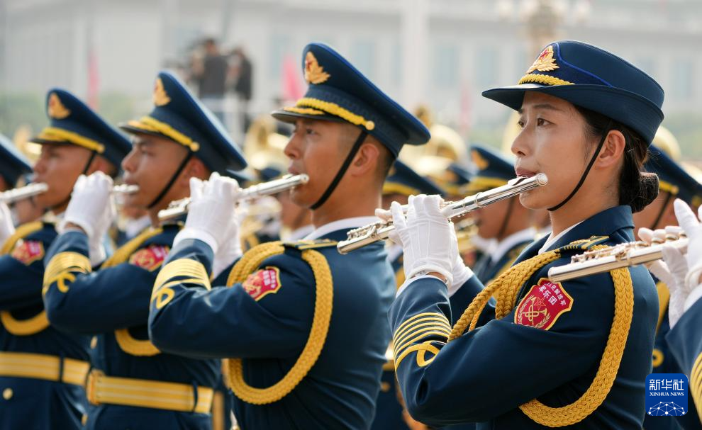 9月3日,紀(jì)念中國人民抗日戰(zhàn)爭暨世界反法西斯戰(zhàn)爭勝利80周年大會(huì)在北京隆重舉行。這是中國人民解放軍聯(lián)合軍樂團(tuán)在演奏。