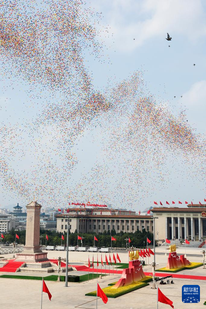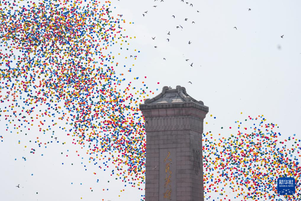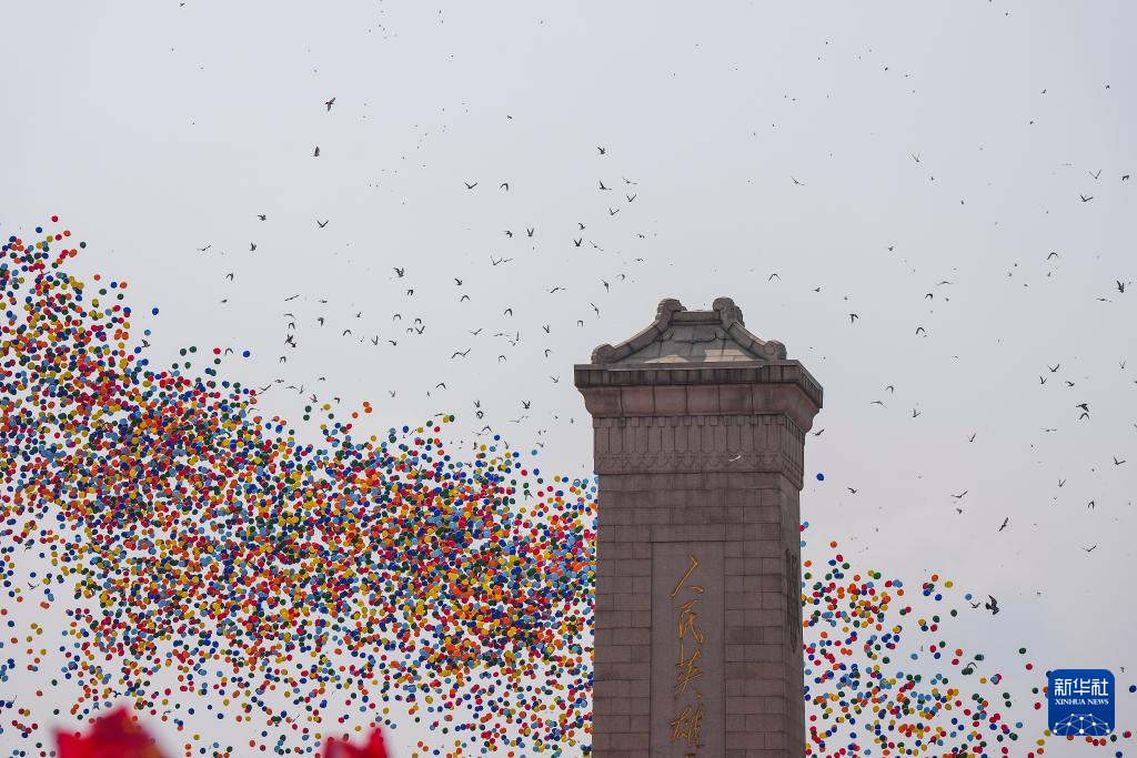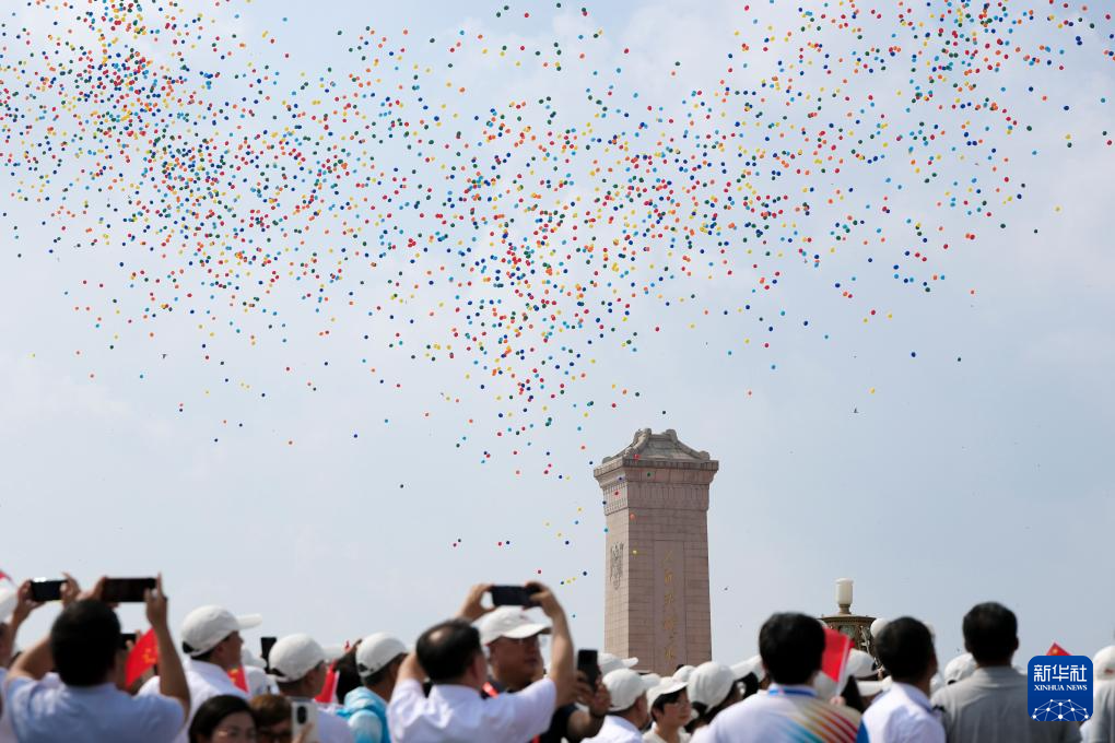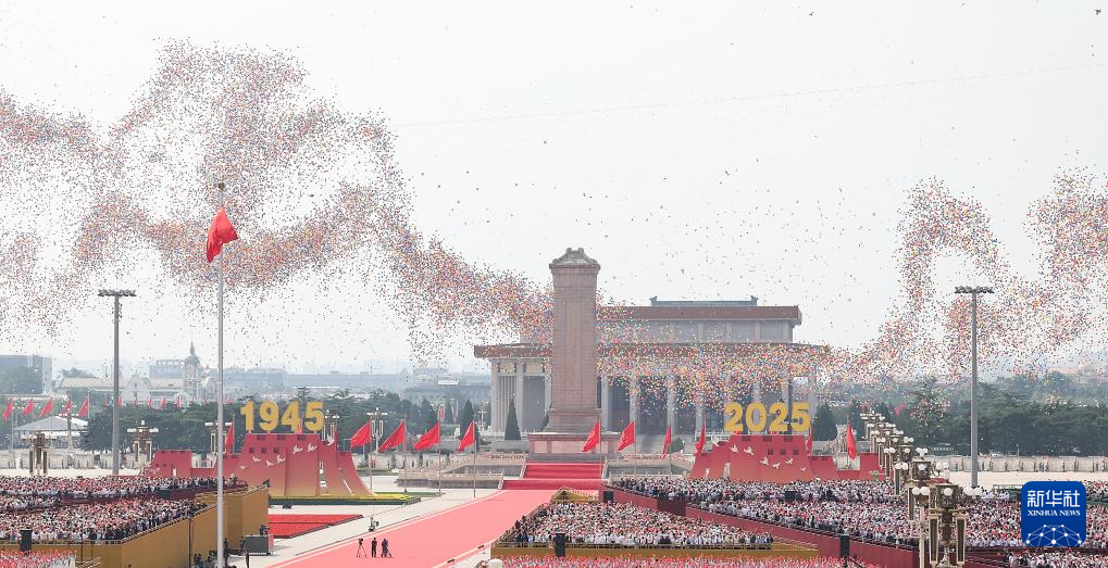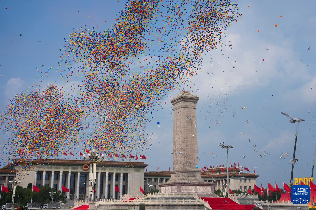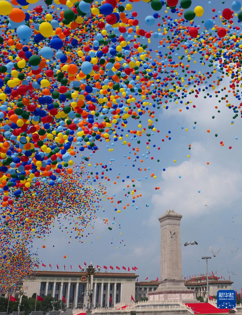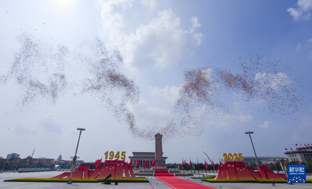 9月3日,紀(jì)念中國人民抗日戰(zhàn)爭暨世界反法西斯戰(zhàn)爭勝利80周年大會(huì)在北京隆重舉行。這是紀(jì)念大會(huì)現(xiàn)場放飛氣球。